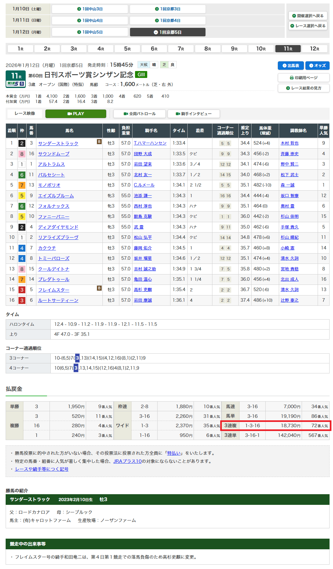 そんな中で、本日届いたシンザン記念を完全無料「展開・脚質」予想で1着~3着の的中を見破った有力予想サイトをご紹介!!