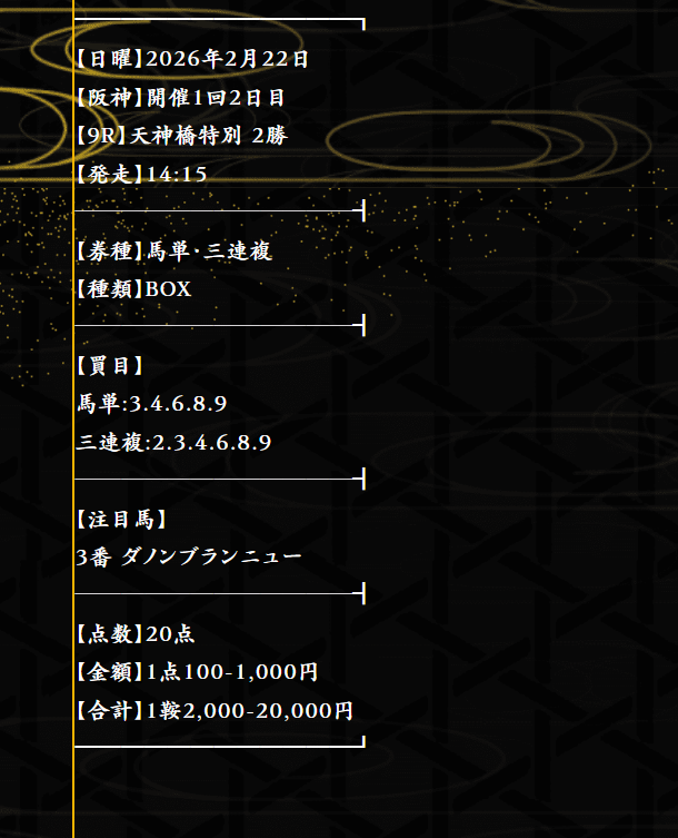 小倉大賞典予想的中ありがとうございました。 買い目画像もPAT画像もスクショ撮り忘れてしまったけど 711倍を3連単10点1点500円で的中 35万5500円、回収率も異常な数値… 先週知ったけど、平場も多めに予想出しているし、今週は先週以上に稼げそうな感じだな。
