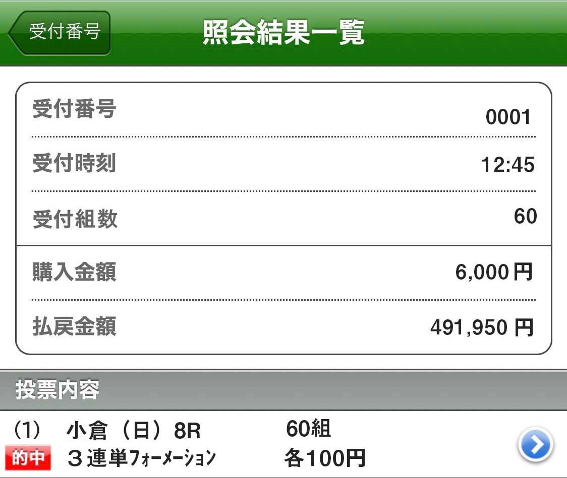G1裏開催の小倉、高配当当ててもらいましたわ。 G1はガチガチだったし、こっちも買っておいてよかった。 5400円の馬券代、点数18点で1475850円的中。 気になるサイトではあったから1度は使ってみたいと思っていたけど使って正解でした。