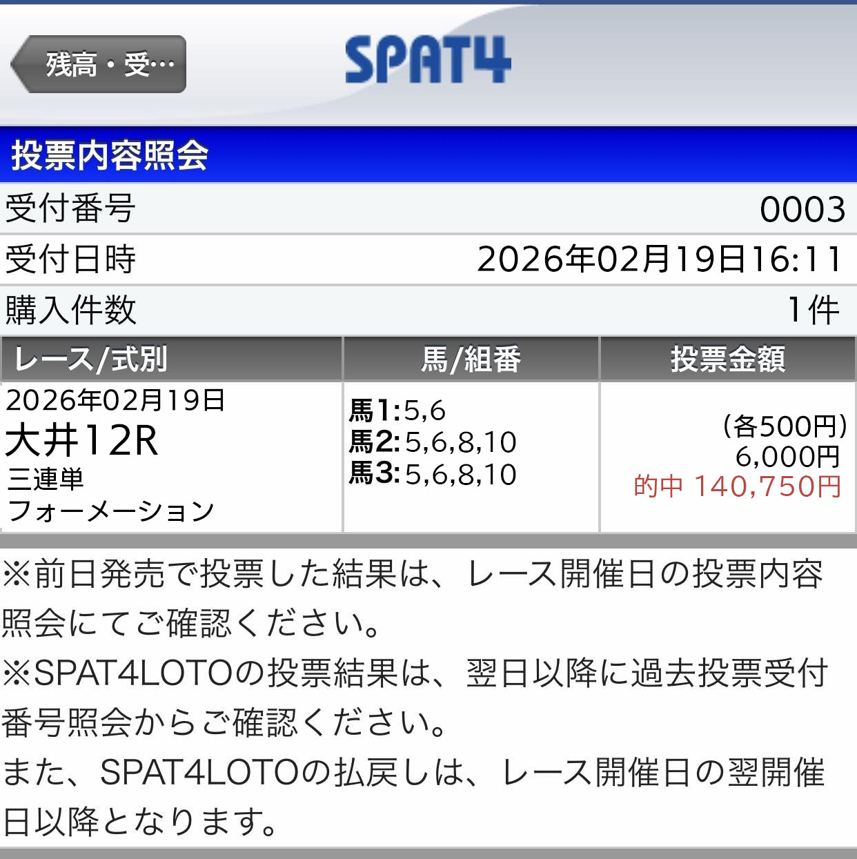 3連単にしては点数は多いけど、1点100円、点数60点、馬券代6千円で3連単4919.5倍当たるなら俺は全然ありだね、俺の師匠である競馬を教えてもらった友達に的中写メ自慢したら40万馬券なんて100点あっても足りない、絶対取れんって言ってた(笑) どんなに競馬歴が長くても使う予想サイトを間違えたら当たるものも当たらないよね、2026年、運命の競馬サイトと巡り合えました。