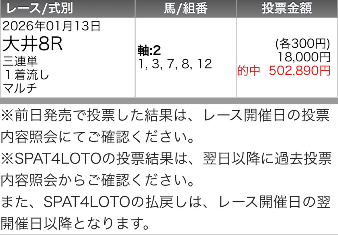 まさかチェックメイトでこんな大金が的中すると思いませんでした💦嬉しいのは当然なんですがなんか夢のみたいです💦最高の予想と結果を本当にありがとうございました😭✨️