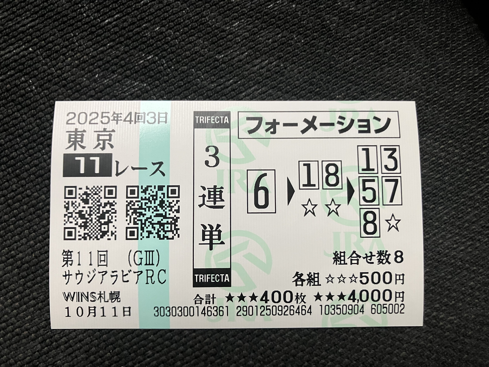 奴隷のように平日働いているので的中報告が遅れました、平日の工場勤務より週末の競馬の方が稼げています。 先週のサウジもバッチリ的中貰えて16万1650円払い戻し、今週も楽しみに予想待っています。