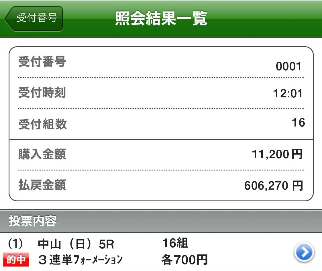 めっちゃ当たってる口コミ見たから使ってみたら初日から中山1Rで6万8700円の払い戻し!
