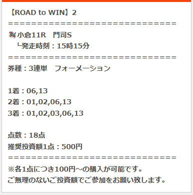開幕週の小倉メインで万馬券的中貰えました! 初回から重賞的中で相性抜群の予想サイトです。 この日も33,570円、335.7倍的中で1点500円で167,850円的中 コンスタントに的中率が高い予想サイトという印象です。